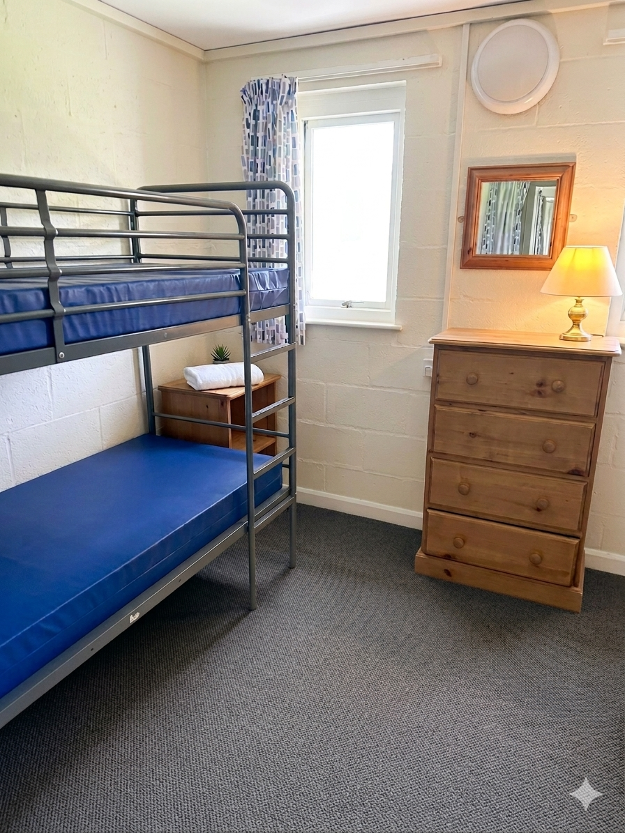 The Bunk Rooms offer basic accommodation for guests. The rooms contain bunk beds, hanging space, drawers and hairdryers.